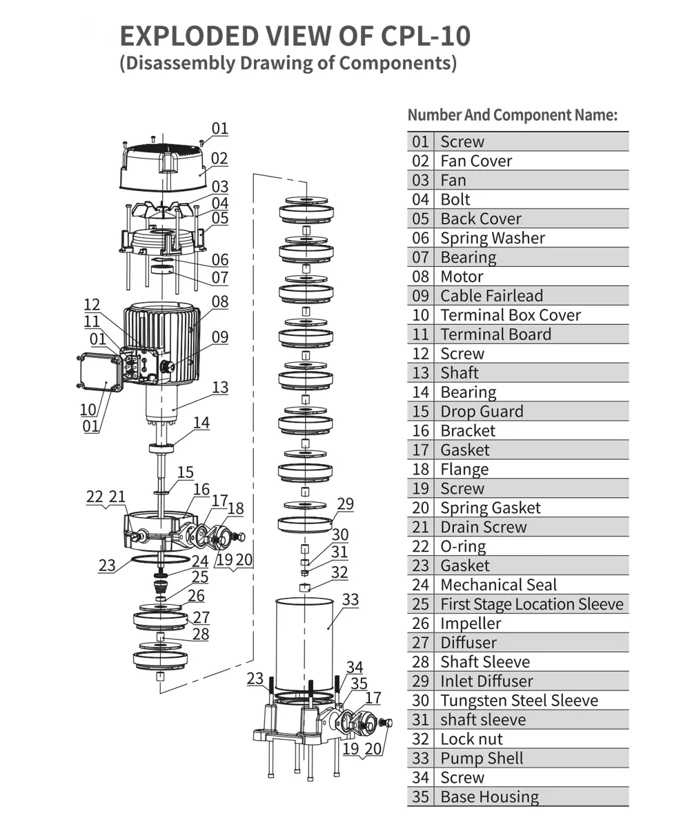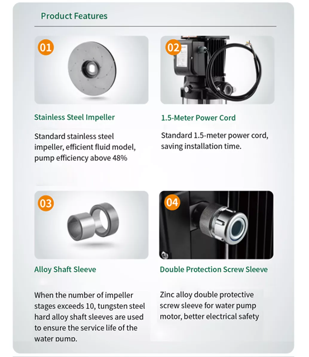 Capul pompei poate fi reglat prin schimbarea numărului de rotoare pentru a îndeplini diferite cerințe. Este potrivit pentru apă curată sau lichide cu proprietăți similare, în timp ce anumite modele pot fi personalizate pentru medii corozive.